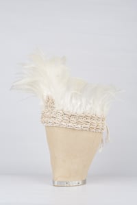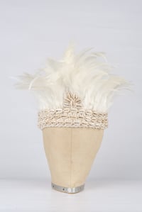 Gorgeous handmade headdress. A hand crochet, cream base which ties at the back. This headdress is so comfortable and easy to wear. It is finished with rooster feathers and cowry shells. Just beautiful. Great for festivals, weddings, hen parties..or even just as decorative piece for your home.